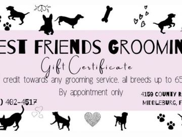 Who doesn't love to pamper their fur baby? Taylor generously donated a $45 credit towards any dog grooming service on all breeds up to $65 pounds. Located in Middleburg FL